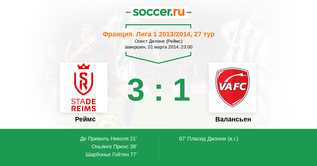 Протокол матча Реймс против Валансьен