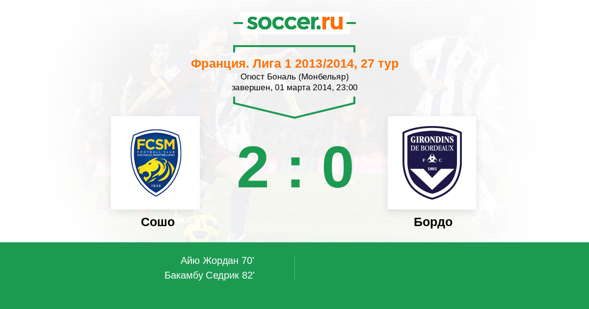 Протокол матча Сошо против Бордо
