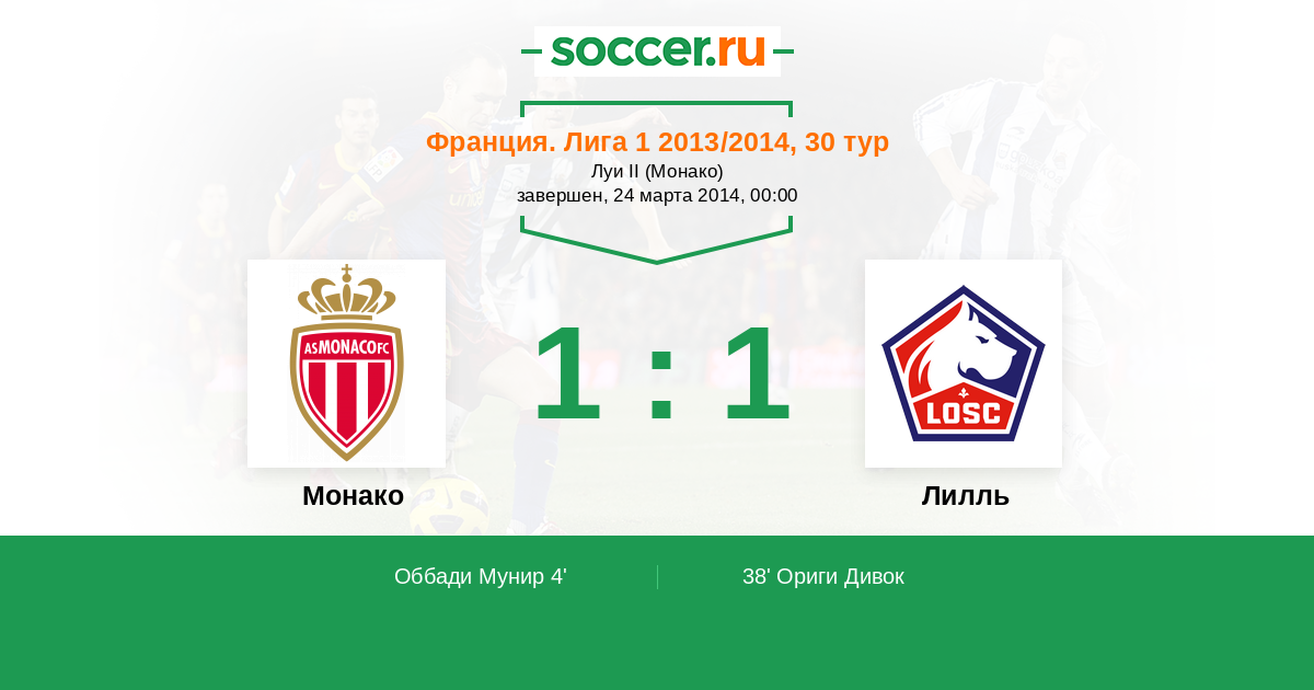 Протокол матча Монако против Лилль