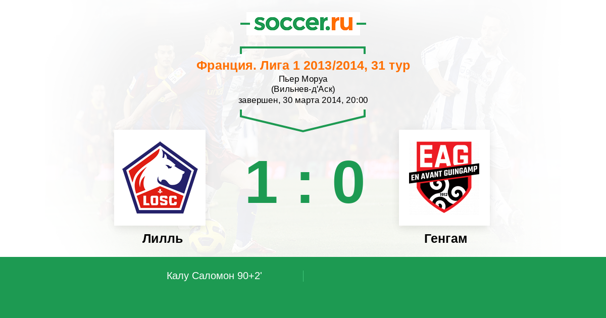 Протокол матча Лилль против Генгам