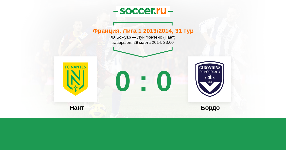 Протокол матча Нант против Бордо