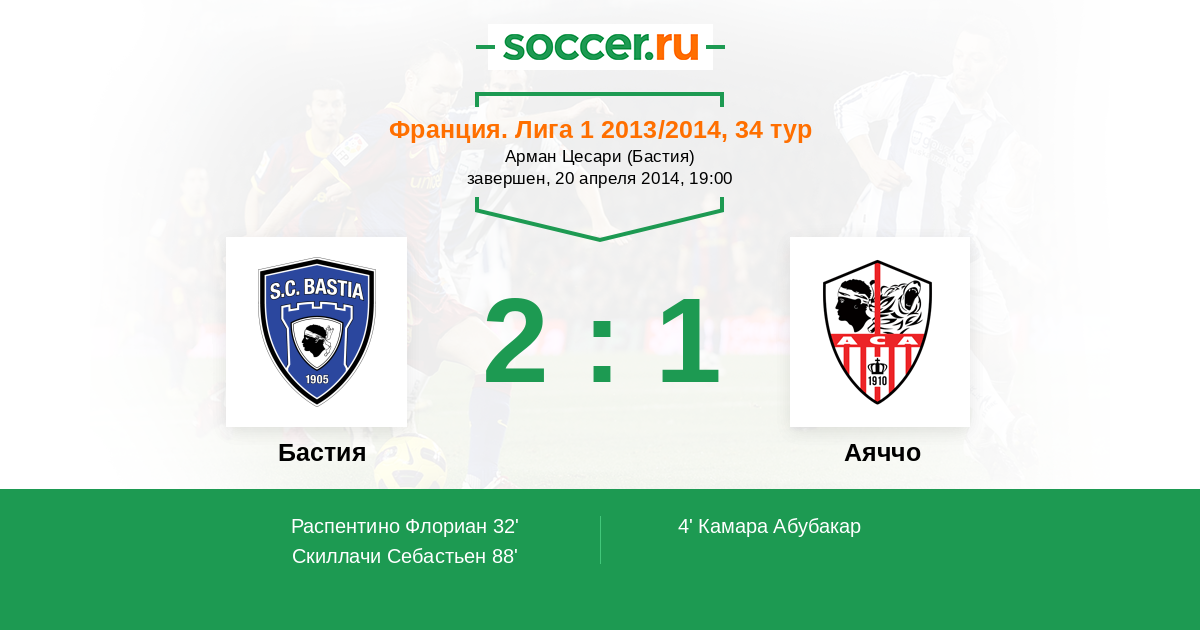 Протокол матча Бастия против Аяччо