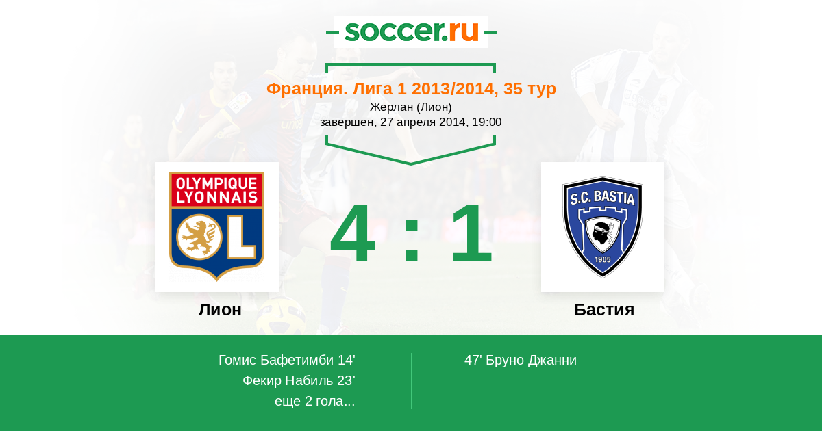 Протокол матча Лион против Бастия