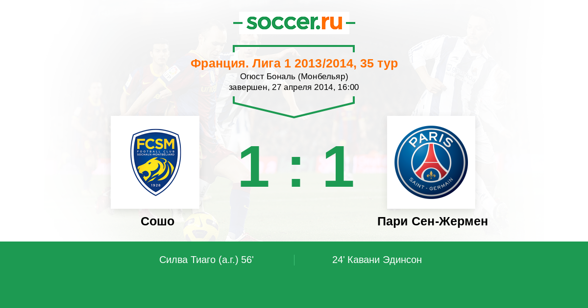 Протокол матча Сошо против Пари Сен-Жермен