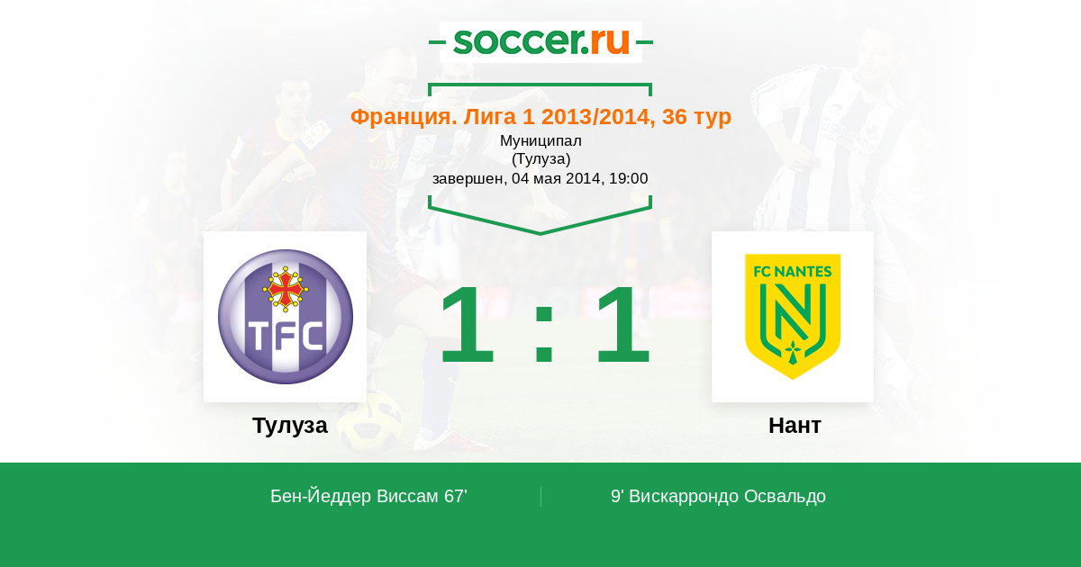 Протокол матча Тулуза против Нант