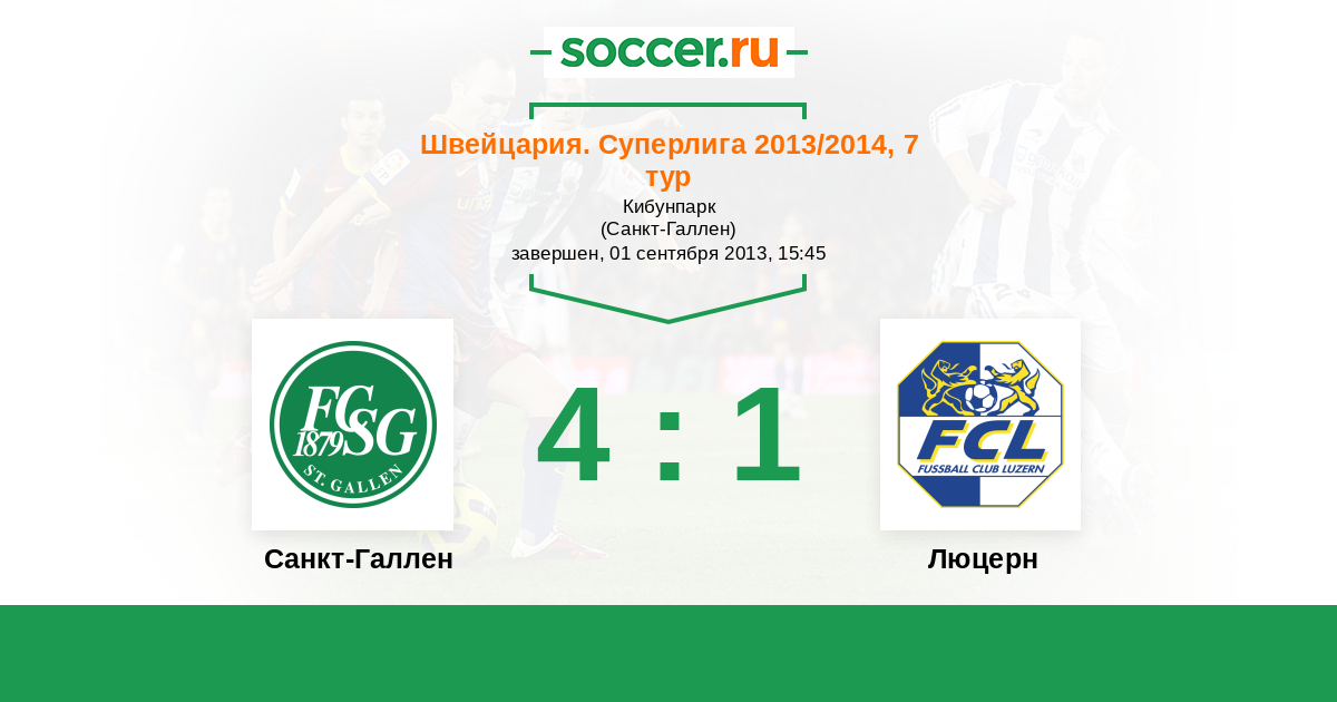 Швейцария. Суперлига 28.09.2014 Люцерн Логотип футбольный клуб Люцерн 1:2 Логотип футбольный клуб Санкт-Галлен Санкт-Галлен