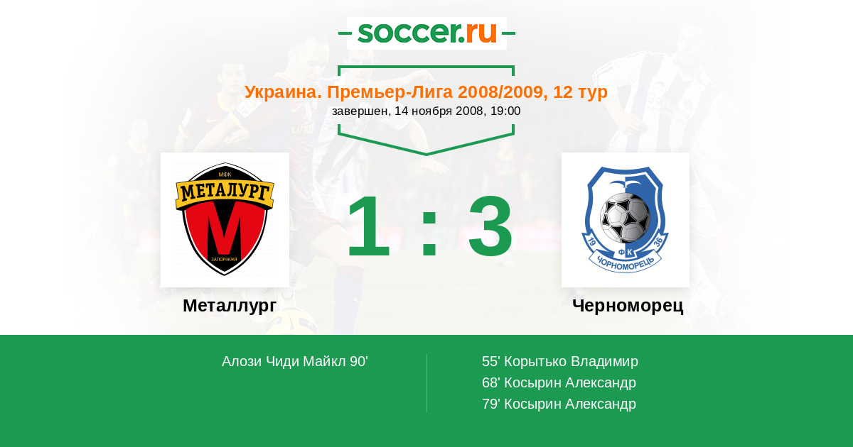 Протокол матча Металлург против Черноморец