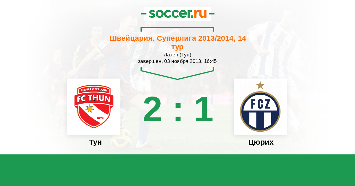 Швейцария. Суперлига 03.05.2014 Тун Логотип футбольный клуб Тун 1:2 Логотип футбольный клуб Цюрих Цюрих