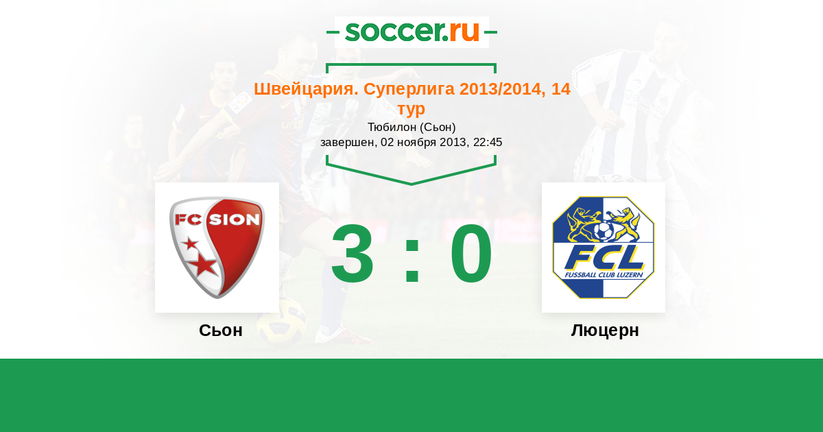 Швейцария. Суперлига 09.03.2014 Сьон Логотип футбольный клуб Сьон 3:2 Логотип футбольный клуб Люцерн Люцерн