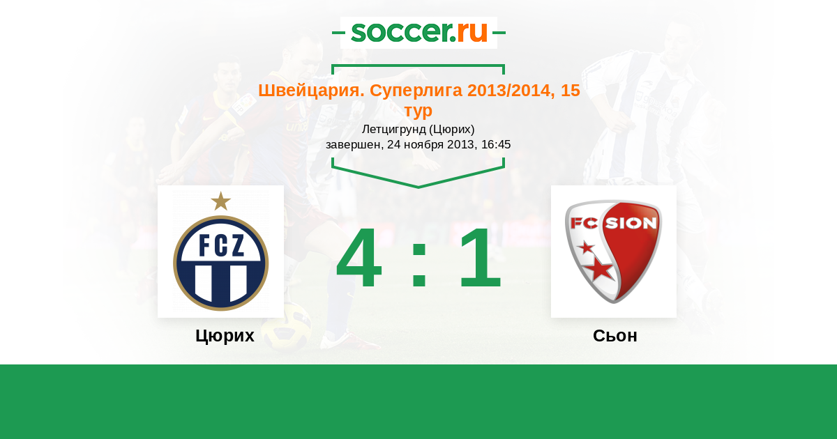 Швейцария. Суперлига 22.11.2014 Сьон Логотип футбольный клуб Сьон 1:3 Логотип футбольный клуб Цюрих Цюрих