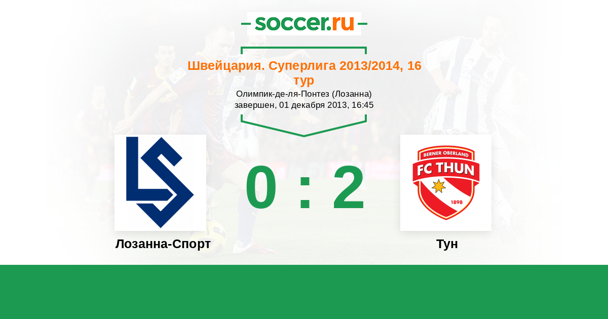Швейцария. Суперлига 15.03.2014 Тун Логотип футбольный клуб Тун 2:2 Логотип футбольный клуб Лозанна-Спорт Лозанна-Спорт