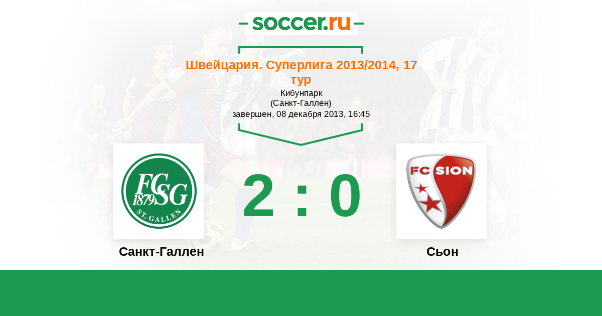 Швейцария. Суперлига 07.12.2014 Санкт-Галлен Логотип футбольный клуб Санкт-Галлен 2:0 Логотип футбольный клуб Сьон Сьон