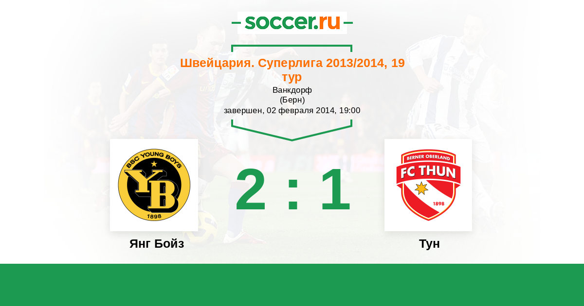 Швейцария. Суперлига 08.12.2013 Тун Логотип футбольный клуб Тун 1:0 Логотип футбольный клуб Янг Бойз (Берн) Янг Бойз