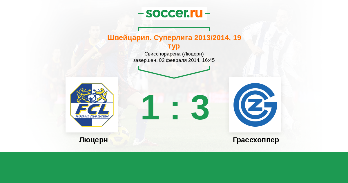 Швейцария. Суперлига 30.11.2013 Грассхоппер Логотип футбольный клуб Грассхоппер (Цюрих) 1:2 Логотип футбольный клуб Люцерн Люцерн