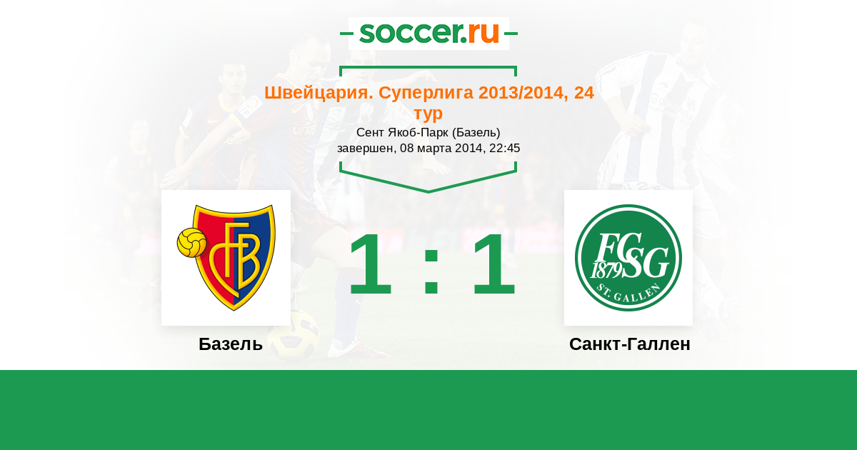 Швейцария. Суперлига 07.04.2013 Санкт-Галлен Логотип футбольный клуб Санкт-Галлен 1:1 Логотип футбольный клуб Базель Базель