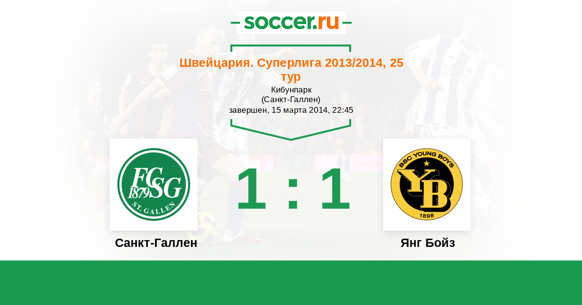 Швейцария. Суперлига 15.12.2013 Янг Бойз Логотип футбольный клуб Янг Бойз (Берн) 1:0 Логотип футбольный клуб Санкт-Галлен Санкт-Галлен