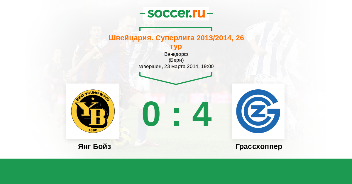 Швейцария. Суперлига 04.05.2014 Грассхоппер Логотип футбольный клуб Грассхоппер (Цюрих) 5:0 Логотип футбольный клуб Янг Бойз (Берн) Янг Бойз