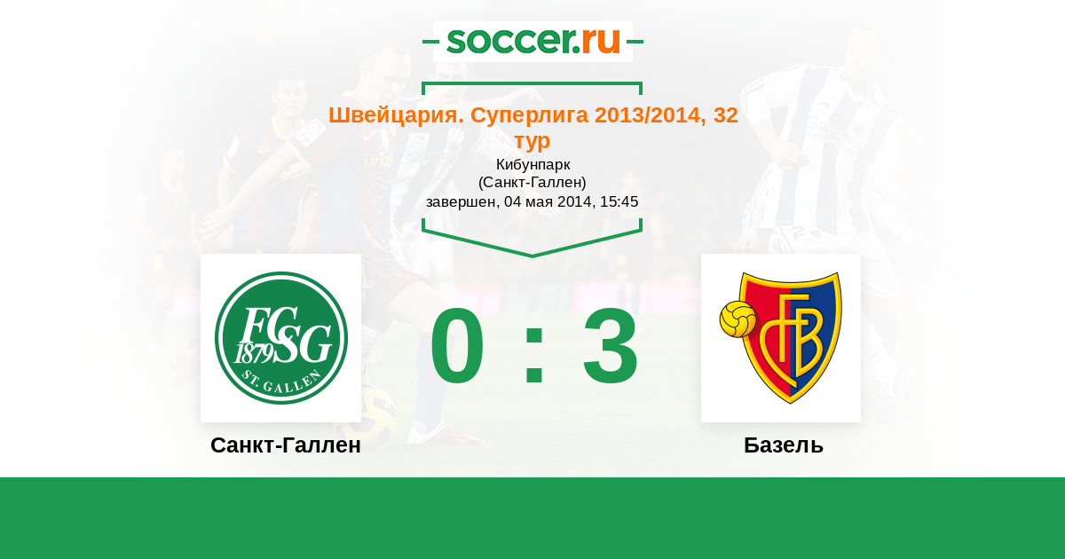 Швейцария. Суперлига 04.10.2014 Санкт-Галлен Логотип футбольный клуб Санкт-Галлен 2:1 Логотип футбольный клуб Базель Базель