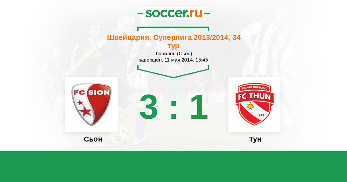 Швейцария. Суперлига 22.02.2014 Тун Логотип футбольный клуб Тун 3:1 Логотип футбольный клуб Сьон Сьон