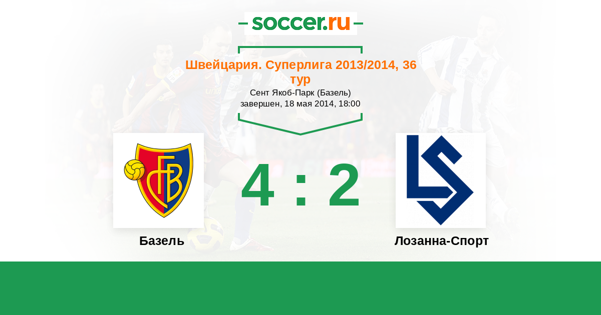 Швейцария. Суперлига 06.10.2013 Лозанна-Спорт Логотип футбольный клуб Лозанна-Спорт 1:2 Логотип футбольный клуб Базель Базель