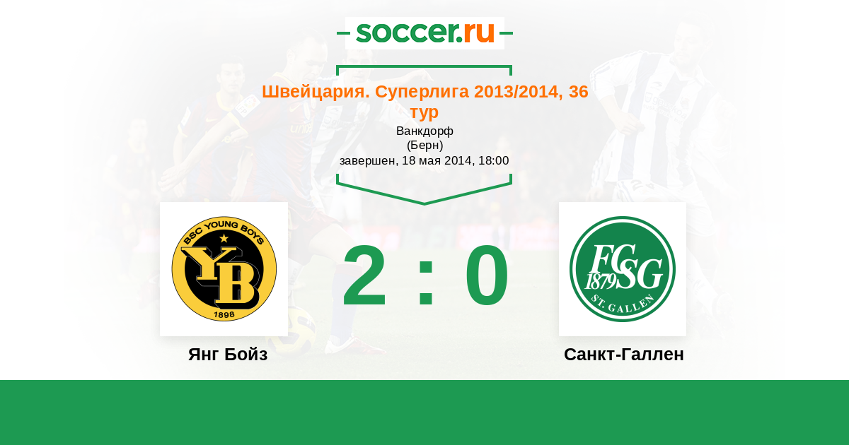 Швейцария. Суперлига 15.03.2014 Санкт-Галлен Логотип футбольный клуб Санкт-Галлен 1:1 Логотип футбольный клуб Янг Бойз (Берн) Янг Бойз