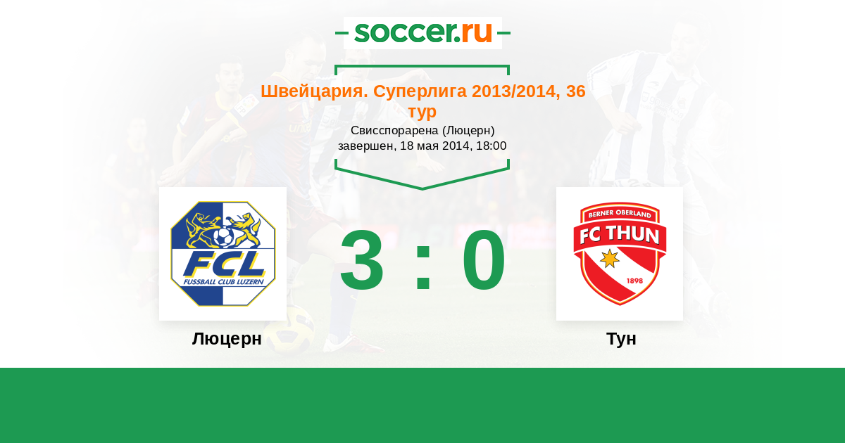 Швейцария. Суперлига 05.05.2013 Тун Логотип футбольный клуб Тун 1:1 Логотип футбольный клуб Люцерн Люцерн