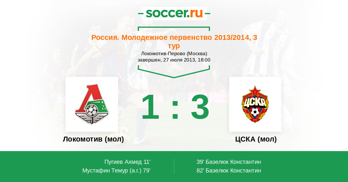 Протокол матча Локомотив (мол) против ЦСКА (мол)