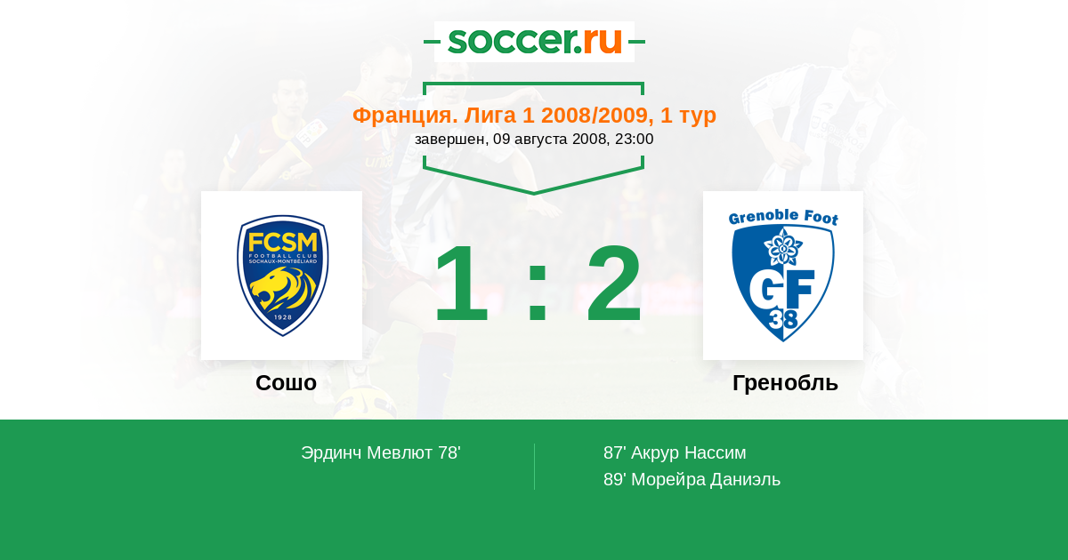 Протокол матча Сошо против Гренобль
