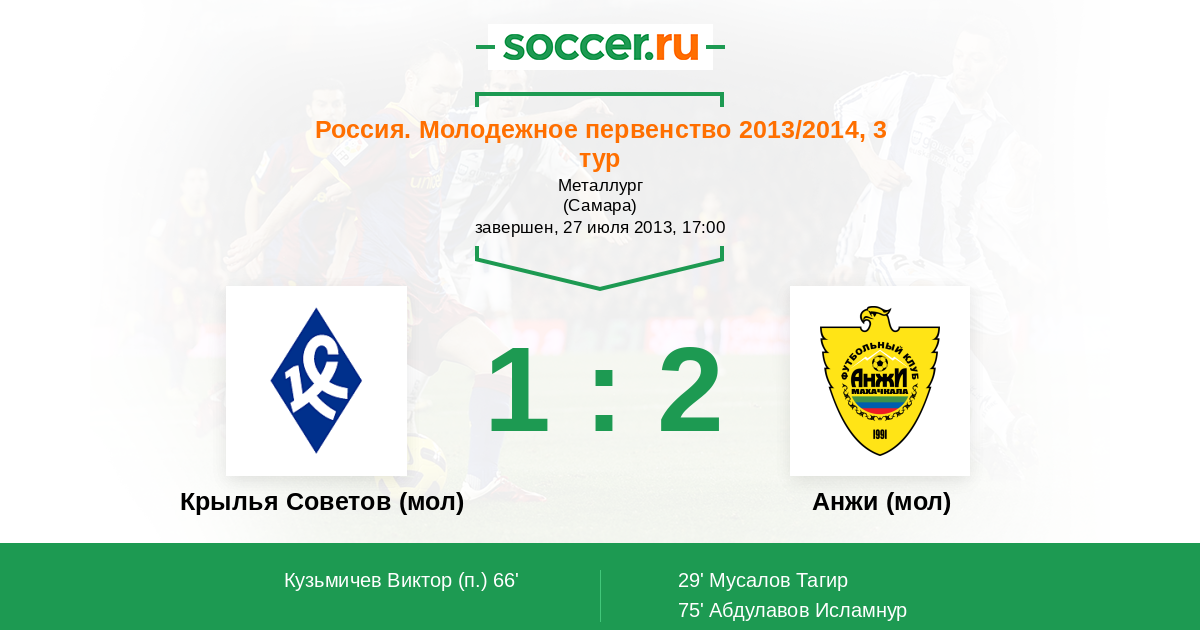 Протокол матча Крылья Советов (мол) против Анжи (мол)