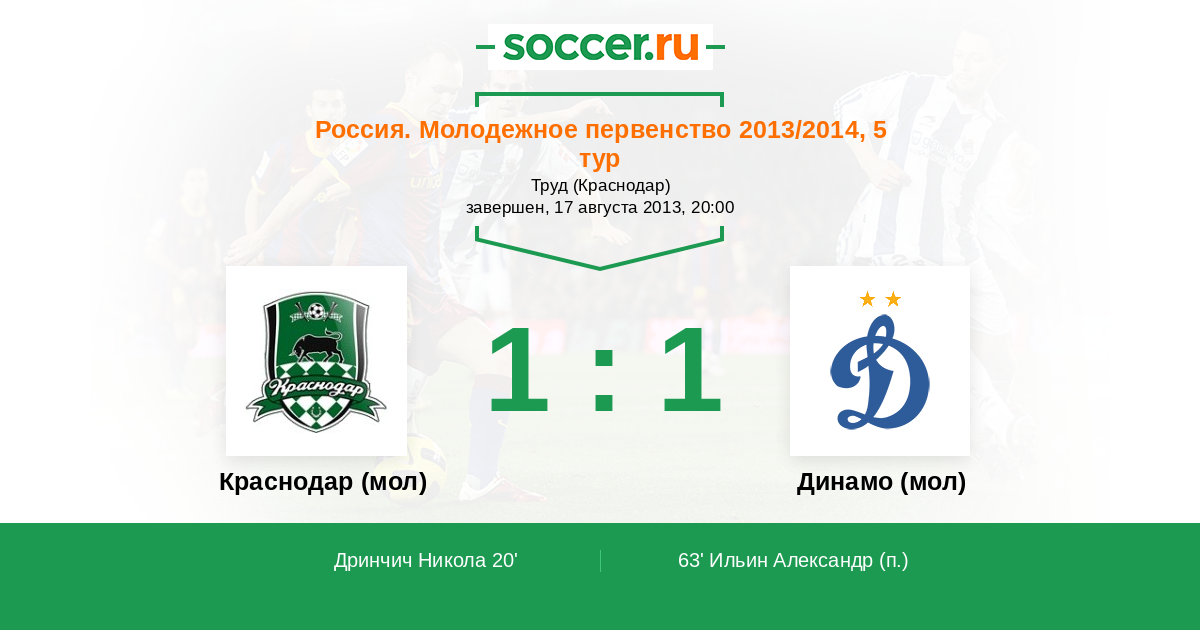 Протокол матча Краснодар (мол) против Динамо (мол)