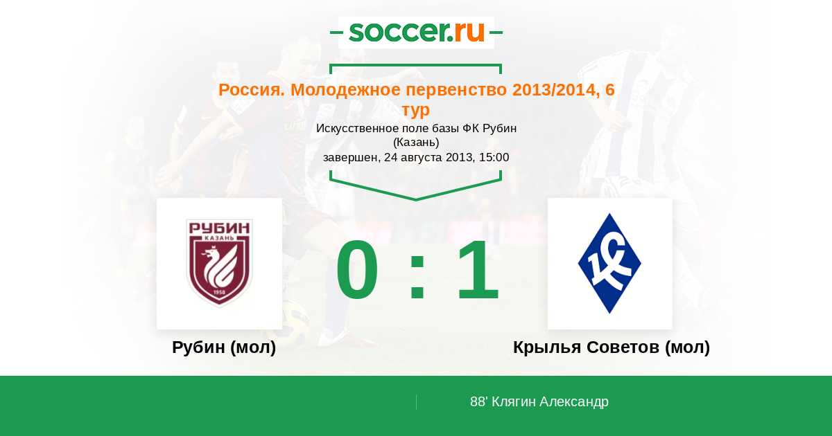 Протокол матча Рубин (мол) против Крылья Советов (мол)