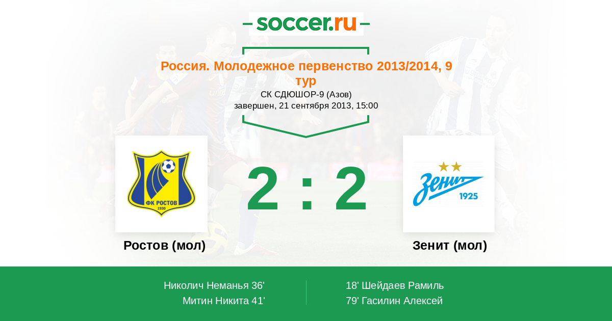 Протокол матча Ростов (мол) против Зенит (мол)