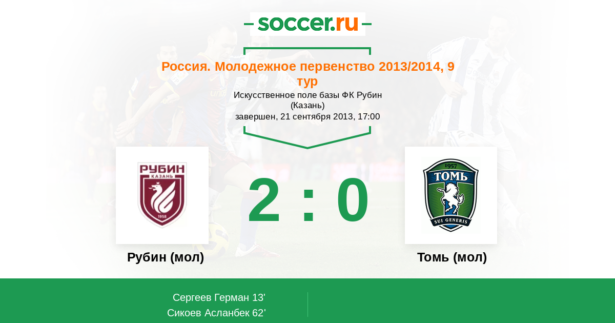 Протокол матча Рубин (мол) против Томь (мол)