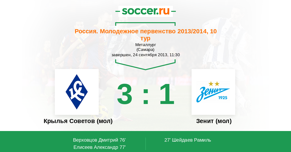 Протокол матча Крылья Советов (мол) против Зенит (мол)