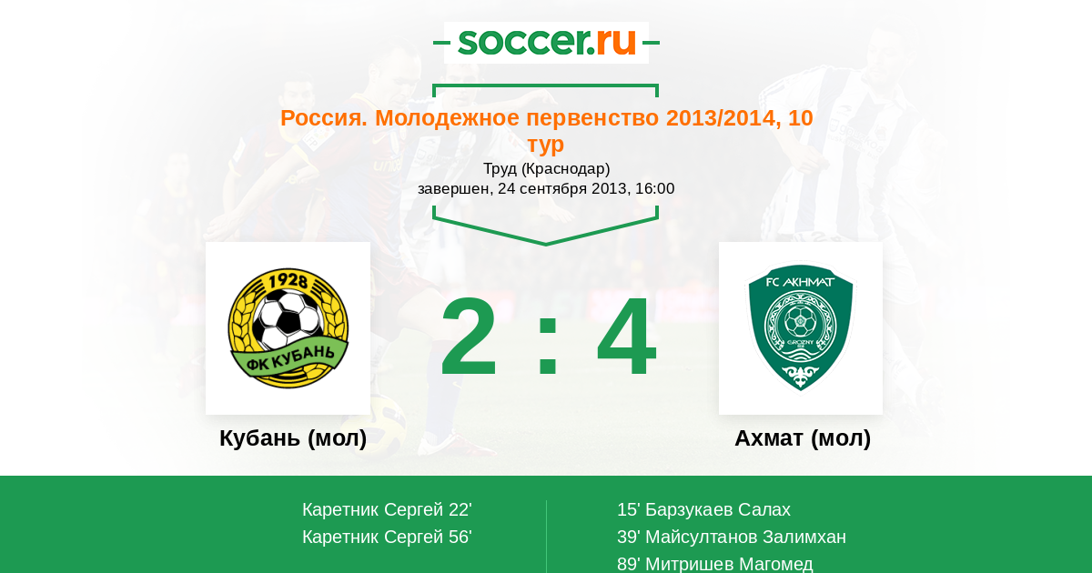 Протокол матча Кубань (мол) против Терек (мол)