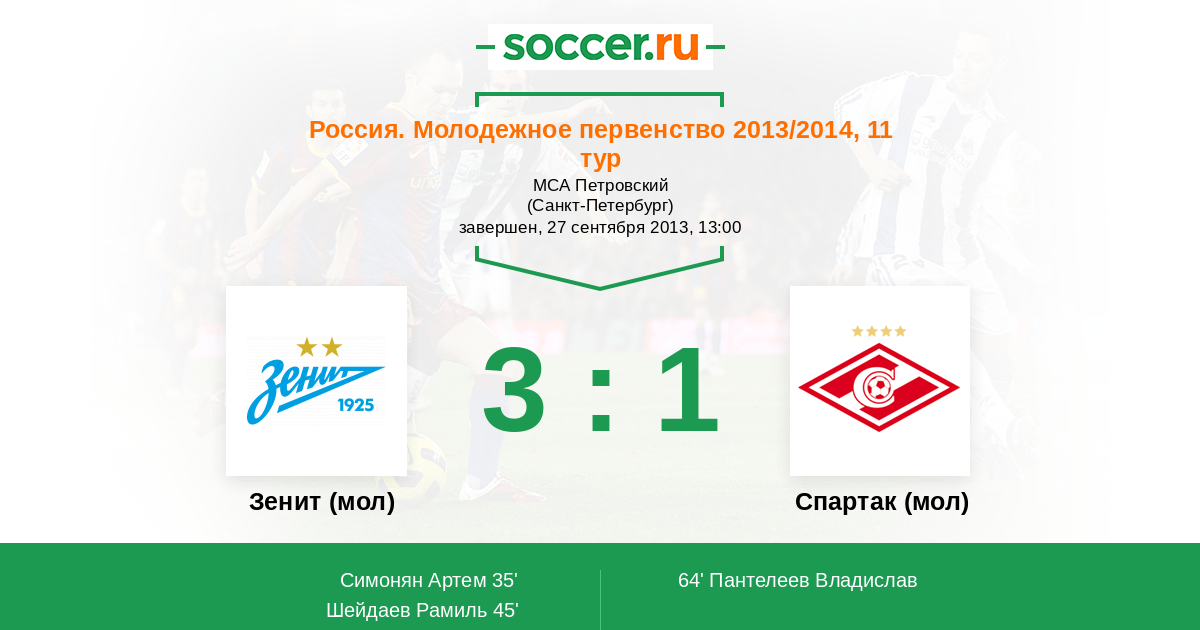 Протокол матча Зенит (мол) против Спартак (мол)
