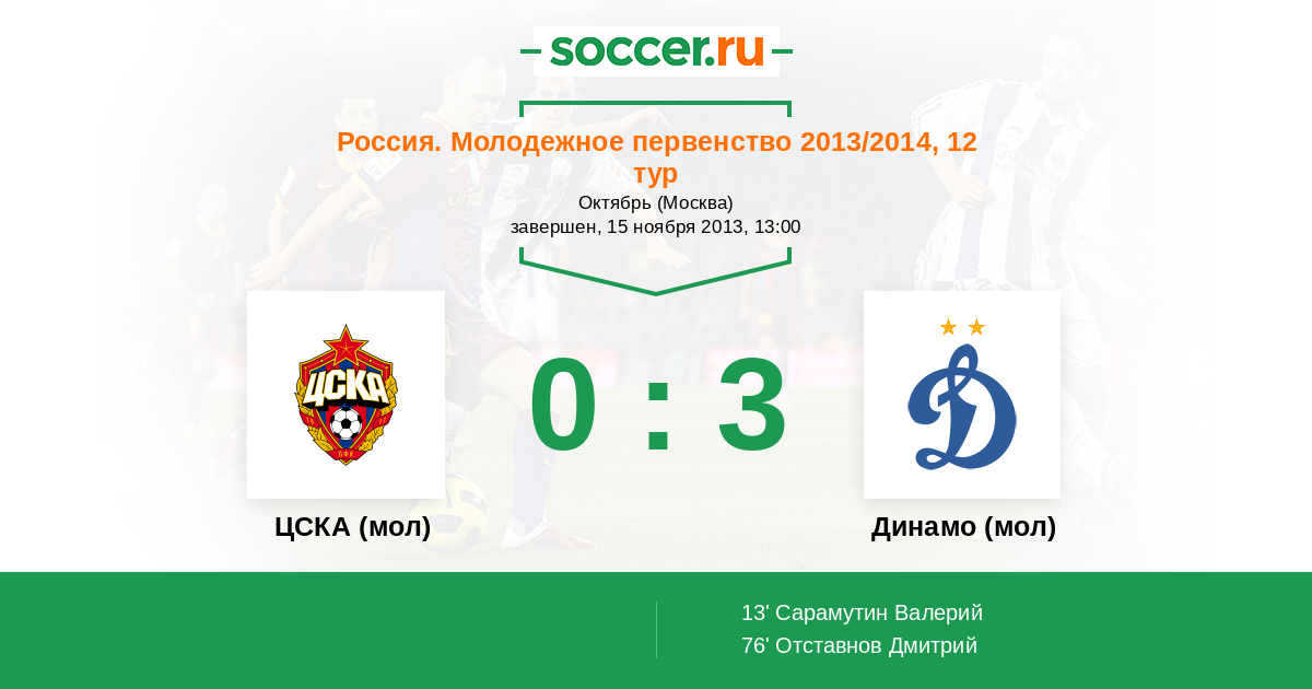 Протокол матча ЦСКА (мол) против Динамо (мол)