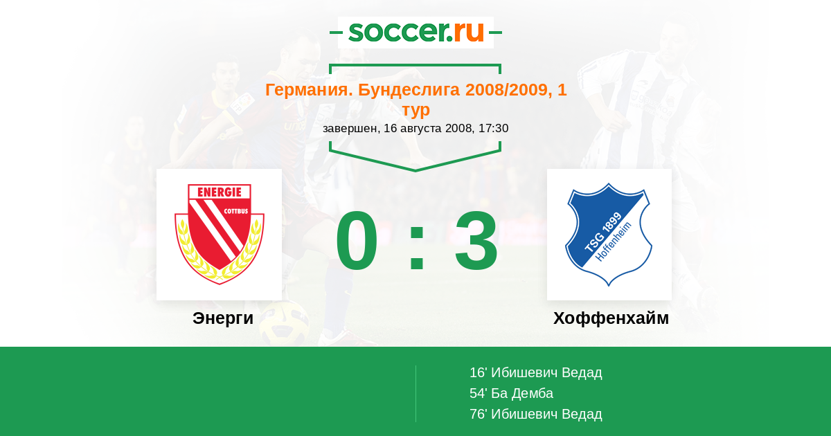 Протокол матча Энерги против Хоффенхайм