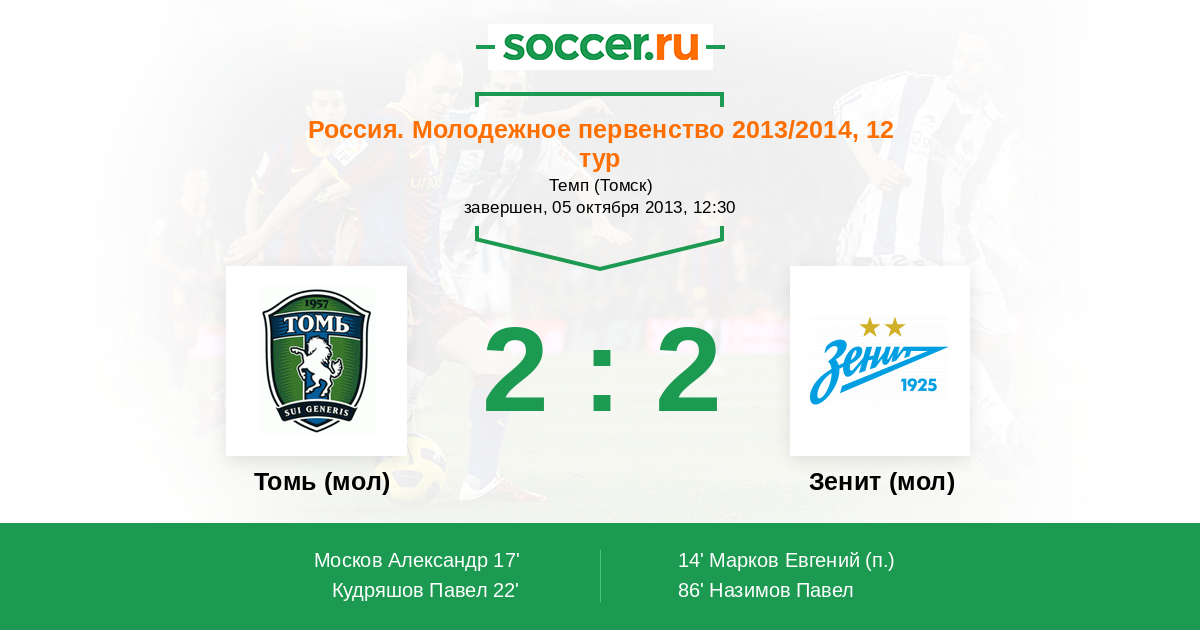 Протокол матча Томь (мол) против Зенит (мол)