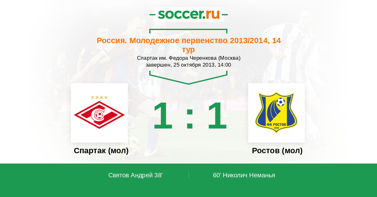 Протокол матча Спартак (мол) против Ростов (мол)