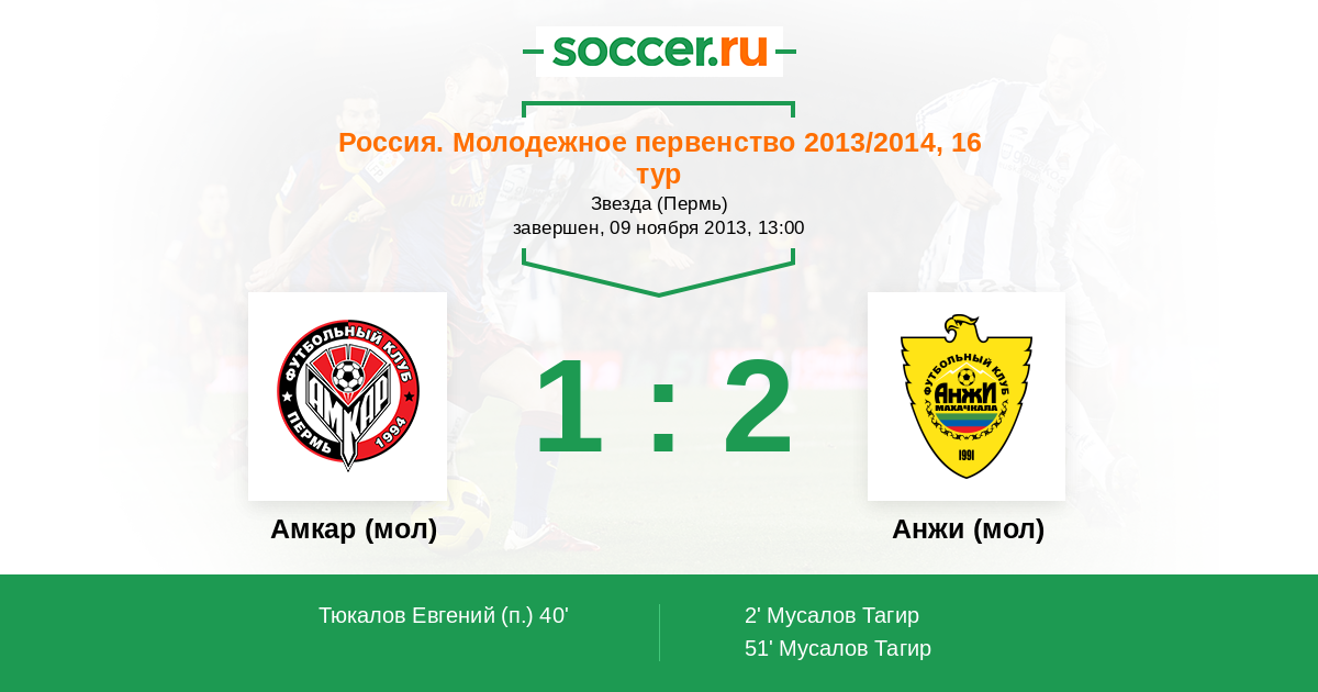 Протокол матча Амкар (мол) против Анжи (мол)