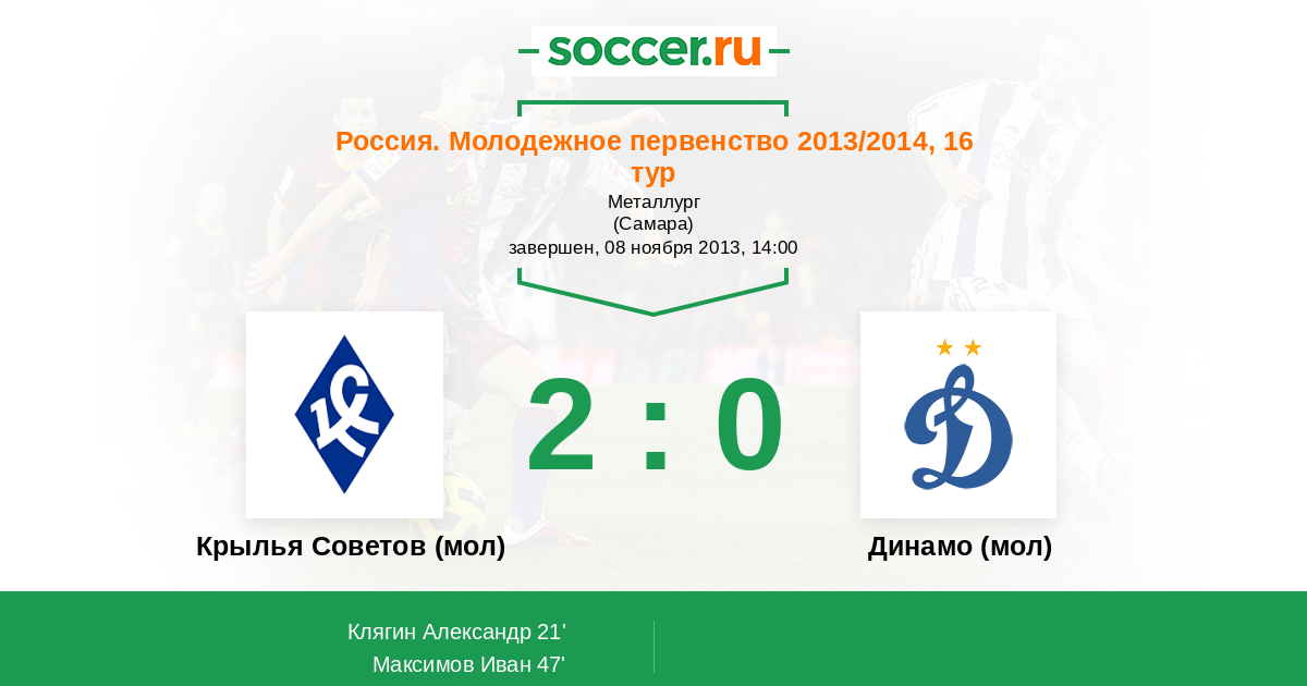 Протокол матча Крылья Советов (мол) против Динамо (мол)