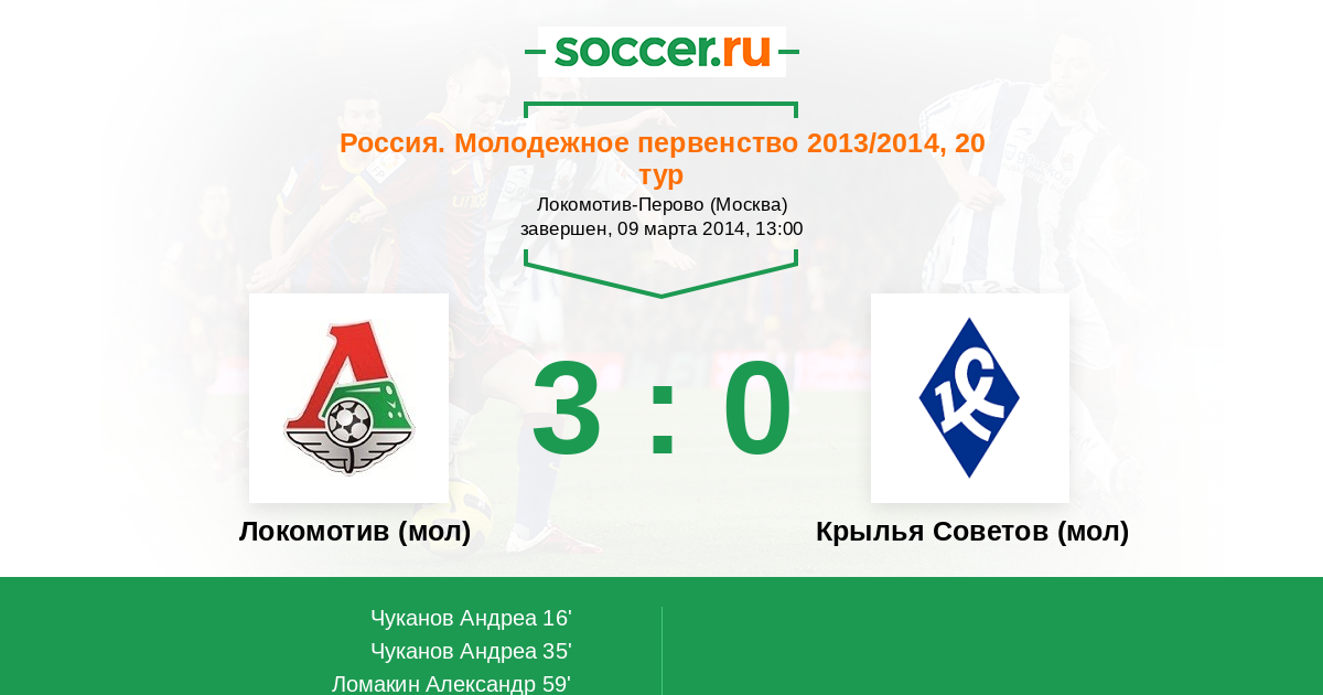 Протокол матча Локомотив (мол) против Крылья Советов (мол)