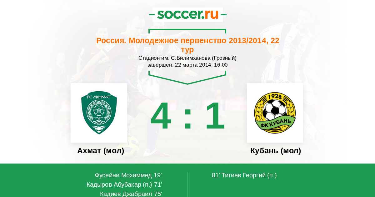 Протокол матча Терек (мол) против Кубань (мол)
