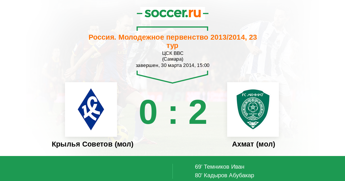 Протокол матча Крылья Советов (мол) против Терек (мол)