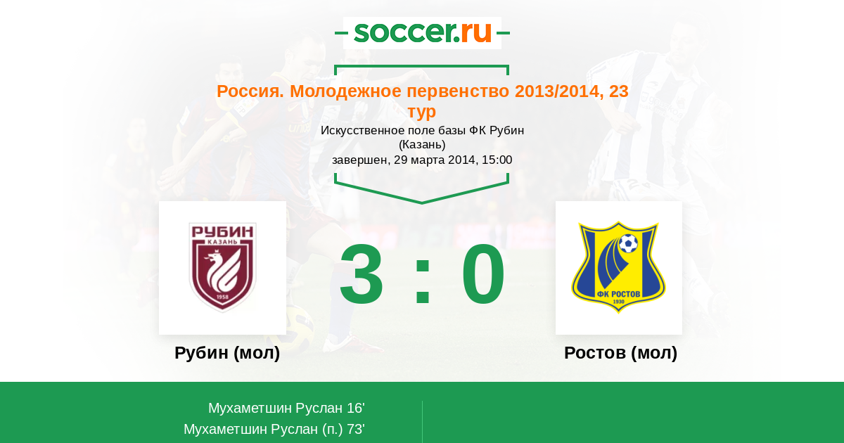 Протокол матча Рубин (мол) против Ростов (мол)
