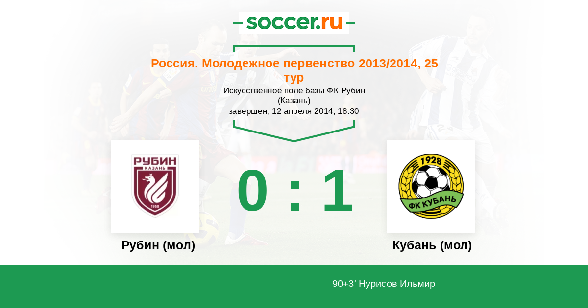 Протокол матча Рубин (мол) против Кубань (мол)