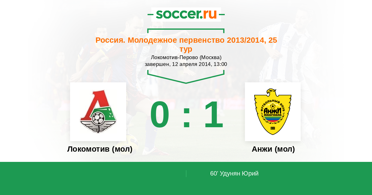 Протокол матча Локомотив (мол) против Анжи (мол)