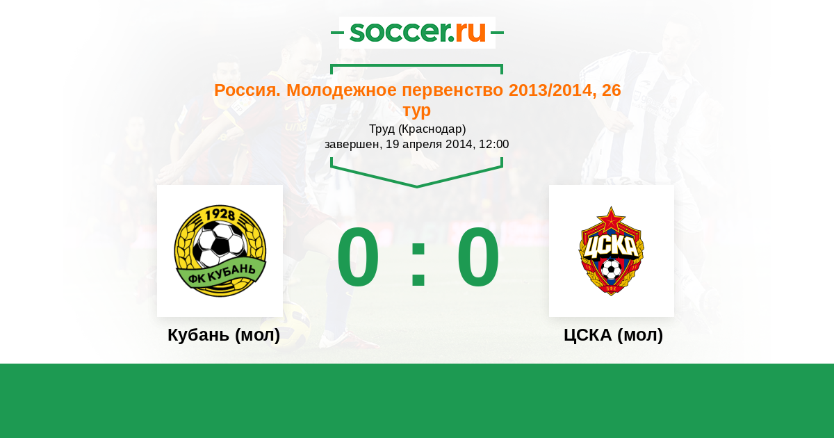 Протокол матча Кубань (мол) против ЦСКА (мол)