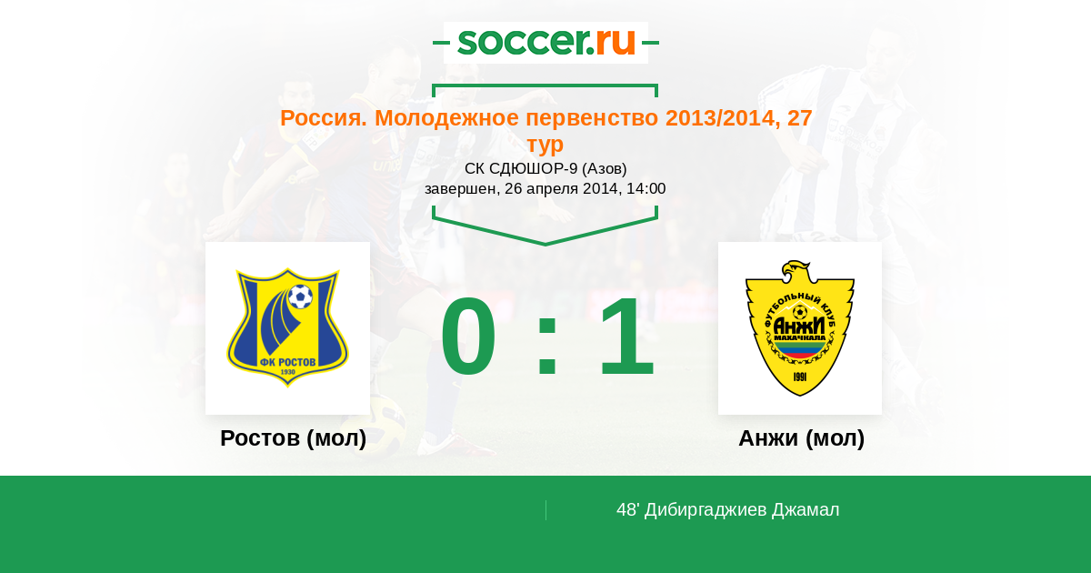 Протокол матча Ростов (мол) против Анжи (мол)